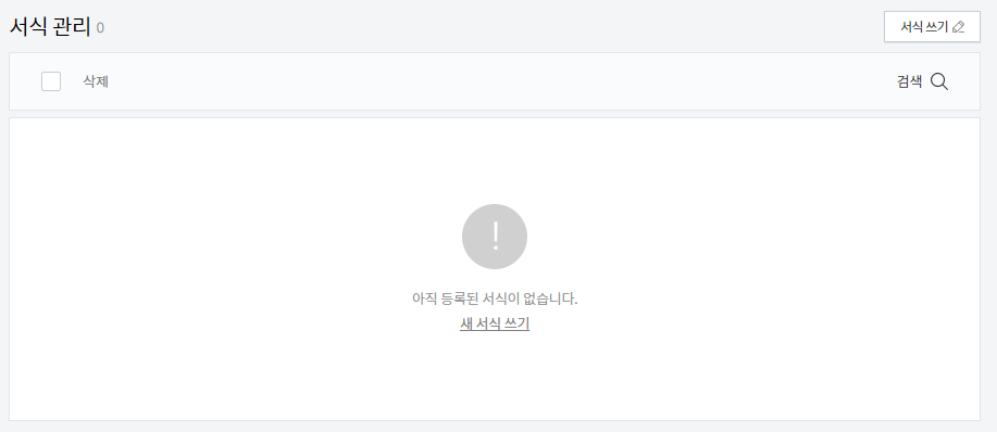 서식 쓰기를 클릭해서, 새로운 서식을 작성한다