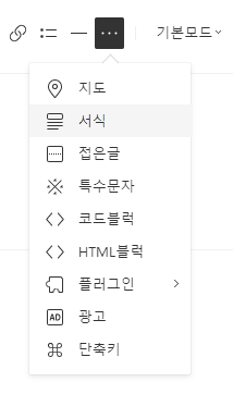 TOC 테스트를 위해서 글쓰기 버튼을 누른 후에, 서식에서 목차 서식을 불러온다