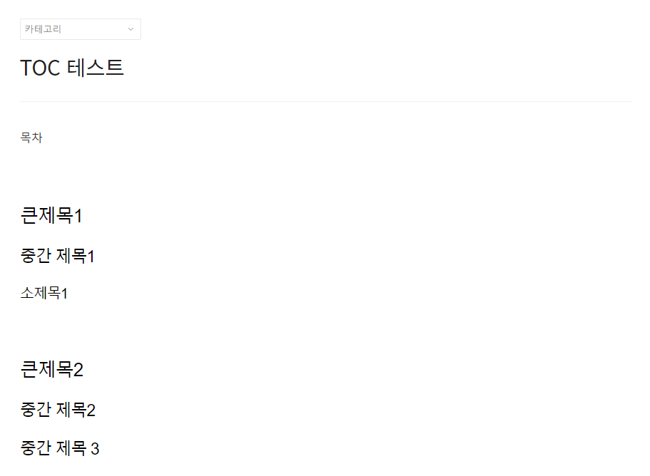 완료 버튼을 눌러서 글을 저장하고, 목차와 글이 제대로 작성되는지 확인한다