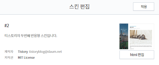 티스토리 설정에서 꾸미기 > 스킨 편집을 클릭한다