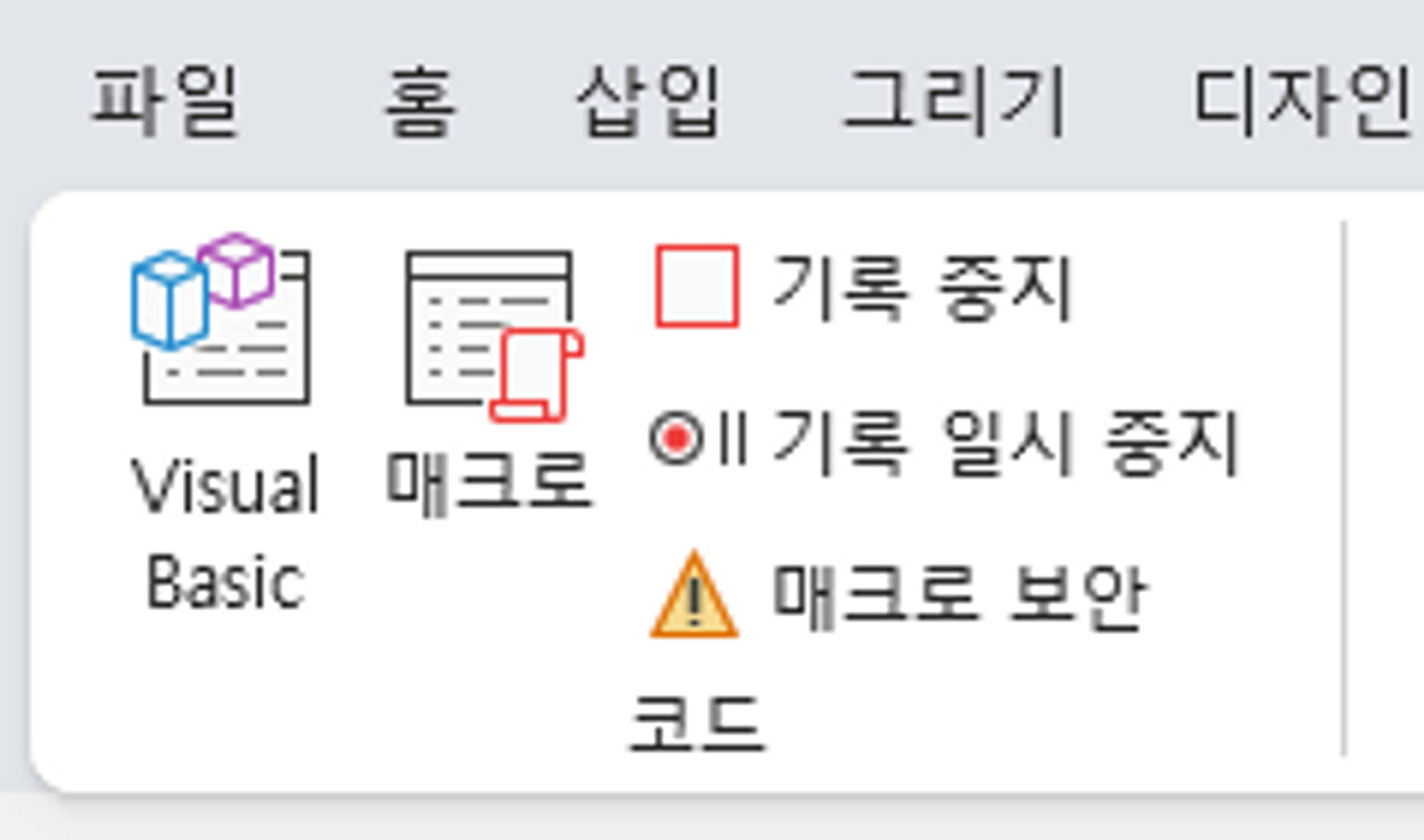 리본 사용자 지정 > 오른쪽 메뉴에서 개발도구를 활성화한다