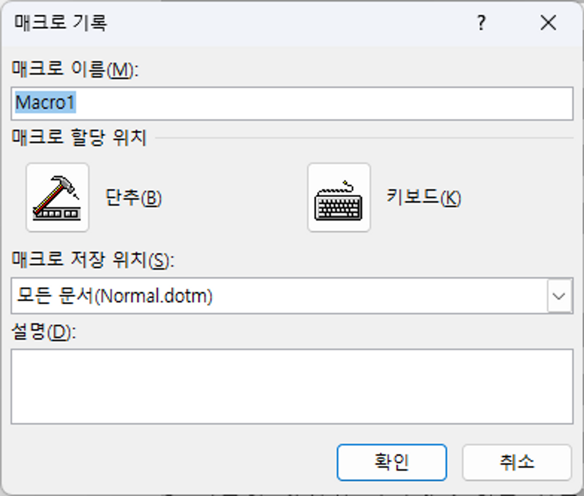 개발도구 > 매크로 기록을 클릭한 후, 키보드를 클릭한다